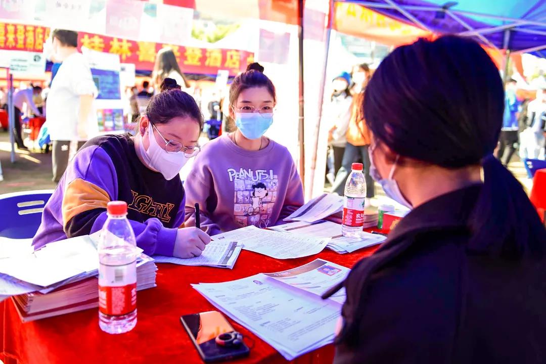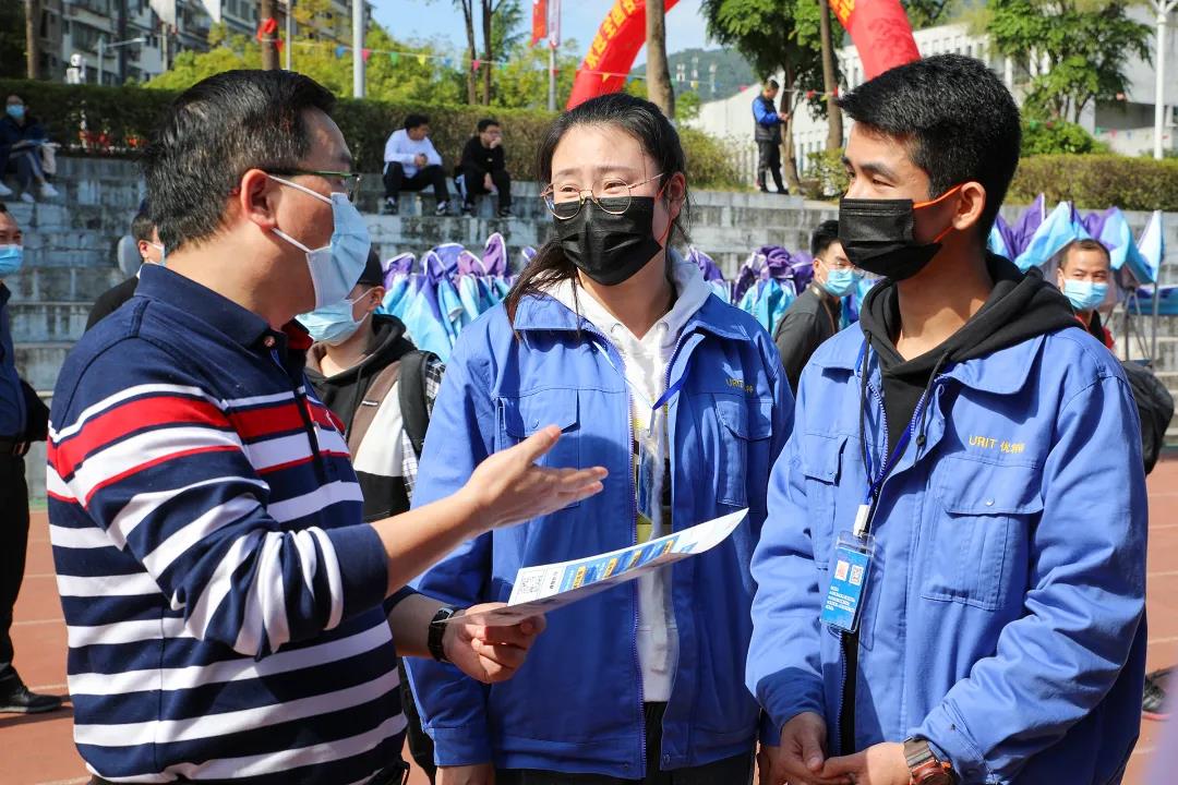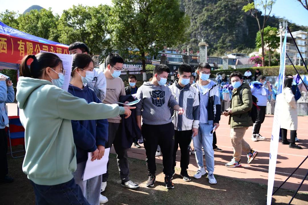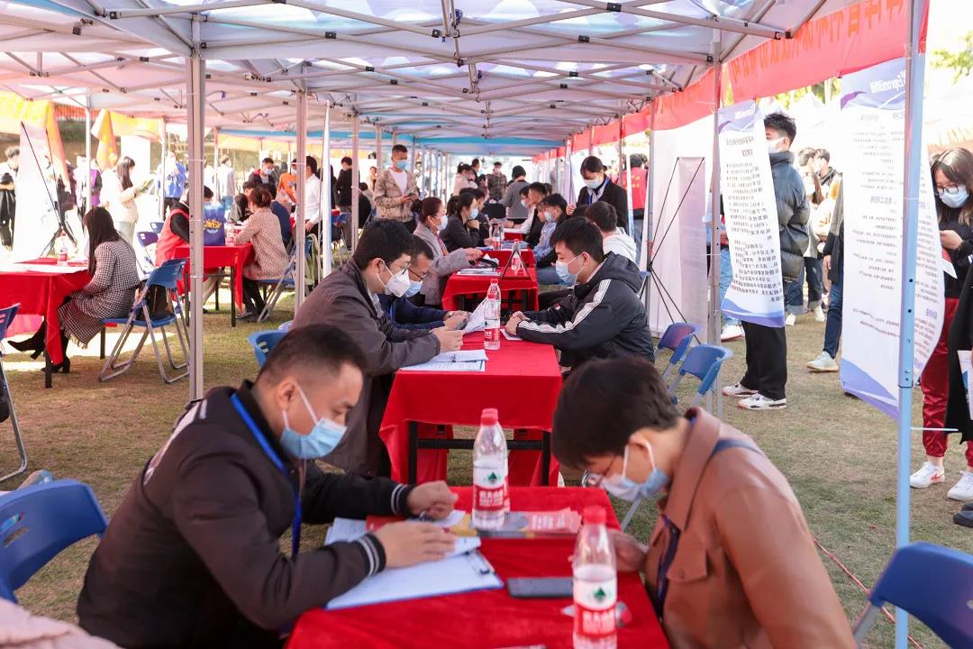 11月11日上午,学校在田径场举办2022届毕业生“双向选择”洽谈会。来自区内外近300家企业前来招聘,提供信息技术、软件开发、机械工程、财务管理、市场营销、环境设计等就业岗位7000余个岗位.参加双选会的用人单位和提供就业岗位再创历史新高。