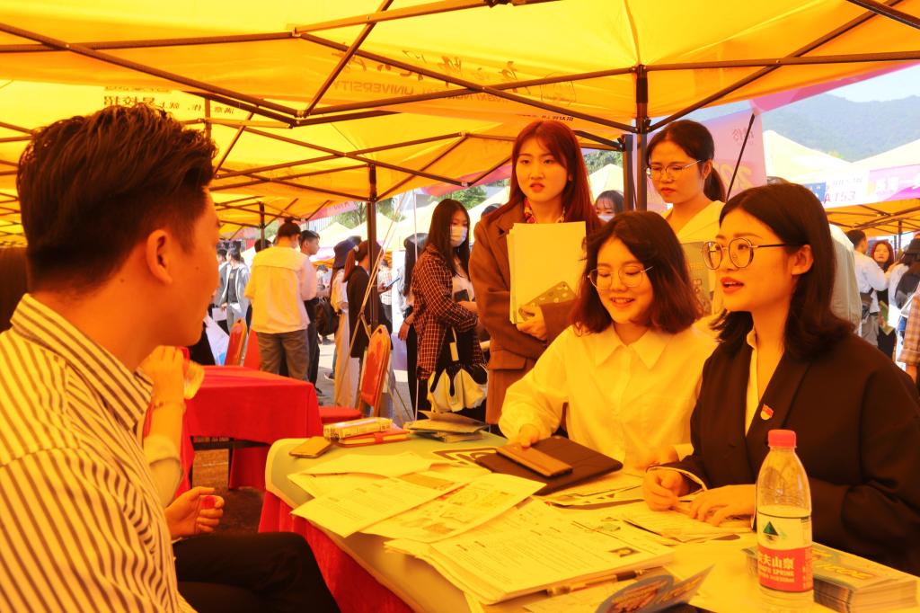 11月8日,暖阳高照,秋风微抚,我院2021届毕业生双选会在田径场隆重举行。来自北京、上海、河北、浙江、广东、广西等区内外230余家单位到校招聘,其中涵盖央企、国企、上市公司等知名企业。招聘涉及医疗、电子、信息科技、营销、管理、培训等多行业领域,共提供了8232个就业岗位。同期另有网络专场招聘企业219家,面向我院发布了7150个毕业生岗位。我院2021届毕业生参加了双选会。