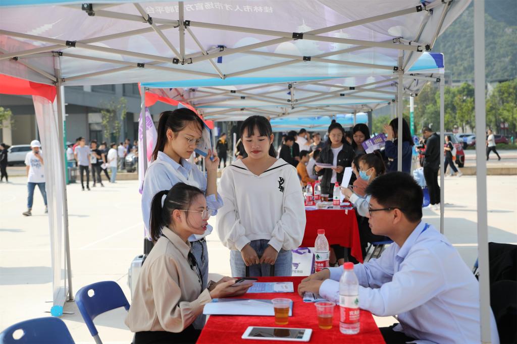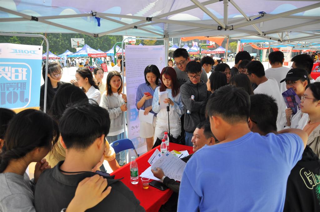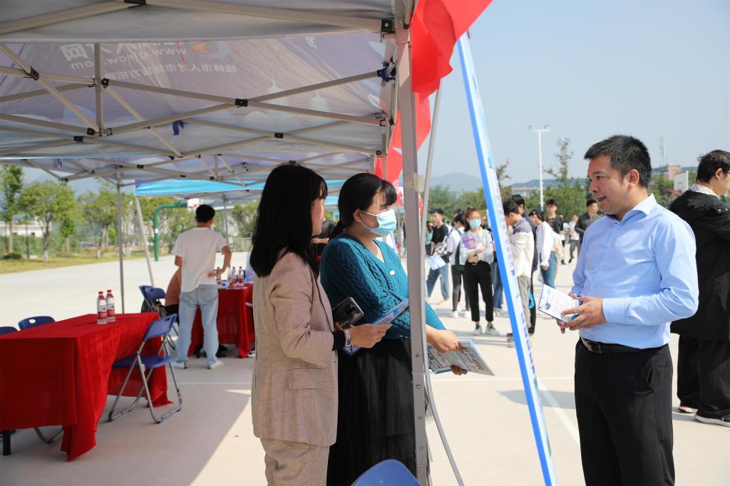 10月13日,我院2021届首场毕业生就业线下小型双向选择洽谈会在第五教学楼北篮球场举行。