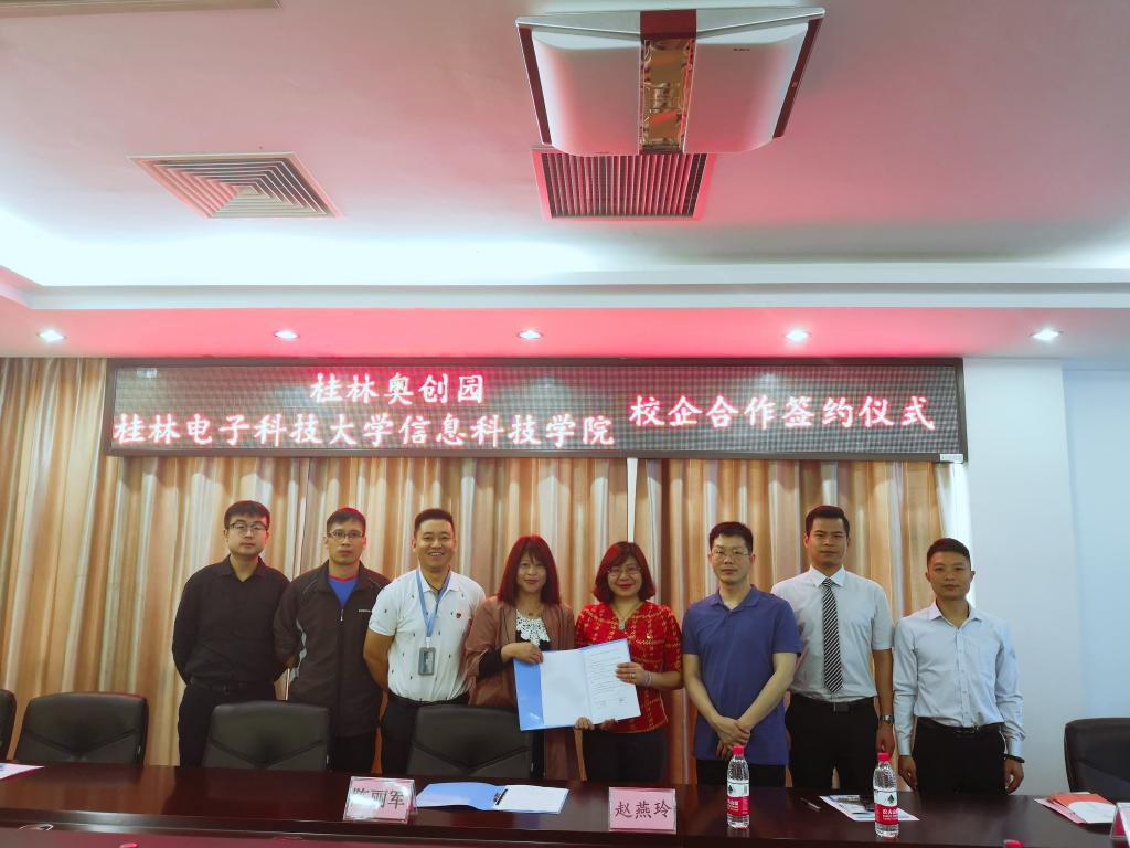 5月14日上午,创新创业学院办公室主任陈丽军与广西桂林聚慧投资集团有限公司旗下桂林奥创园园区总经理赵燕玲在217会议室签署了校企创新创业合作协议。创新创业学院、教务科技部和团委主要负责人,奥创园园区来访人员也一并参加了签约仪式。