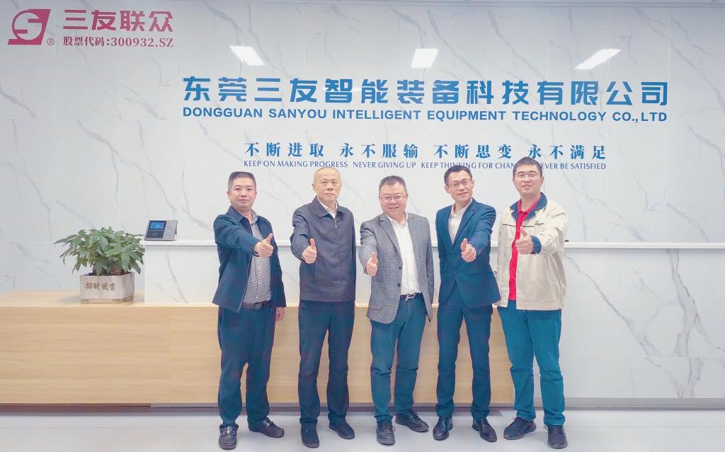 3月28日下午,梁丁丁校长深入三友联众集团股份有限公司实地走访调研,与宋朝阳董事长共商共建产业学院,签约仪式于2023年5月举行。beat365官网校企合作处、电子工程学院相关负责人陪同走访。