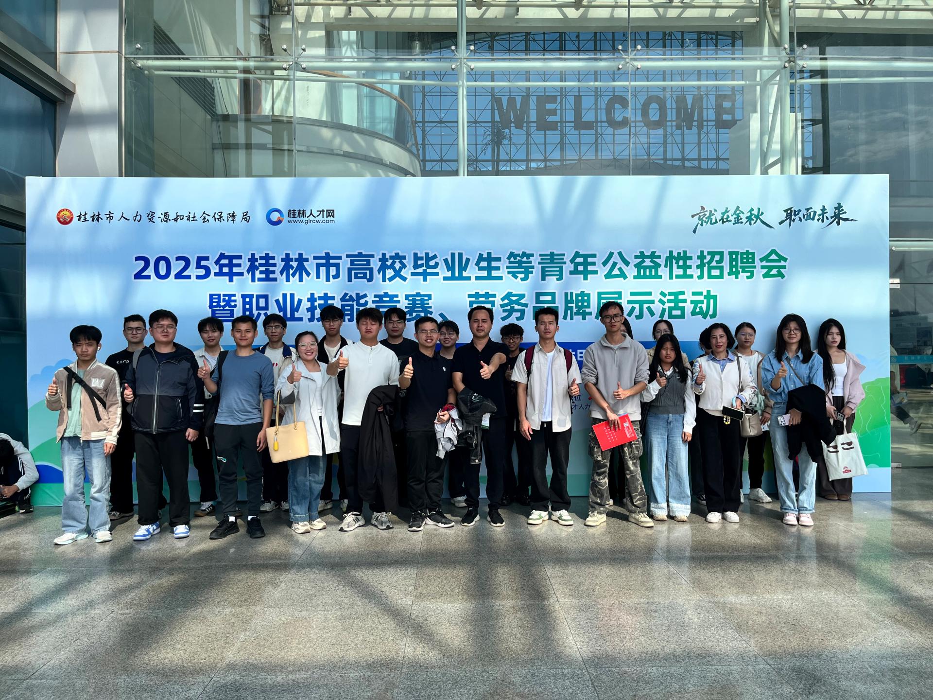 为深入贯彻落实国家关于促进高校毕业生就业工作的决策部署,全力拓宽毕业生就业渠道,11月1日,beat365官网就业指导服务中心精心组织500余名师生代表,赴桂林甲天下会展中心参加由市人力资源和社会保障局主办的“2025年桂林市高校毕业生等青年公益性招聘会暨职业技能竞赛、劳务品牌展示活动”。