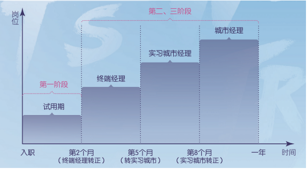 P城市经理:担任城市经理职位,独立负责一个城市的销售与管理工作,强化区域市场的建设与管理技能。