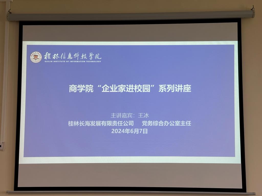 6月7日下午,桂林长海发展有限责任公司党务综合办公室主任王冰应邀走进商学院,以“基于职业生涯发展的认知赋能”为主题,从择企标准、发展平台、文化认知三个维度,为学生们带来了一场别开生面的讲座,旨在帮助学生们更好地规划职业生涯,提升个人发展能力。
