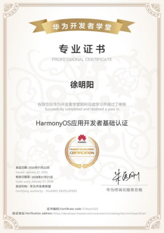 我院二位教师获得“HarmonyOS应用开发者基础认证”