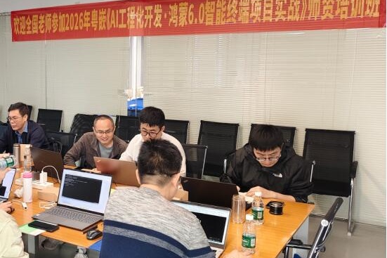 为主动对接国家信息技术创新与智能终端产业发展需求,加强我院“双师型”教师队伍建设,提升在物联网、人工智能等前沿领域的教学与实践能力,2026年1月19日至1月25日,我院院长助理于飞、专任教师徐明阳赴广州参加由广州粤嵌通信科技股份有限公司主办的“2026年春季全国高校师资培训班(AI工程化开发-鸿蒙6.0智能终端项目实战)”。本次培训聚焦鸿蒙HarmonyOS 6.0全场景分布式操作系统,旨在帮助高校教师掌握智能终端开发核心技术,提升教学与工程实践融合能力。