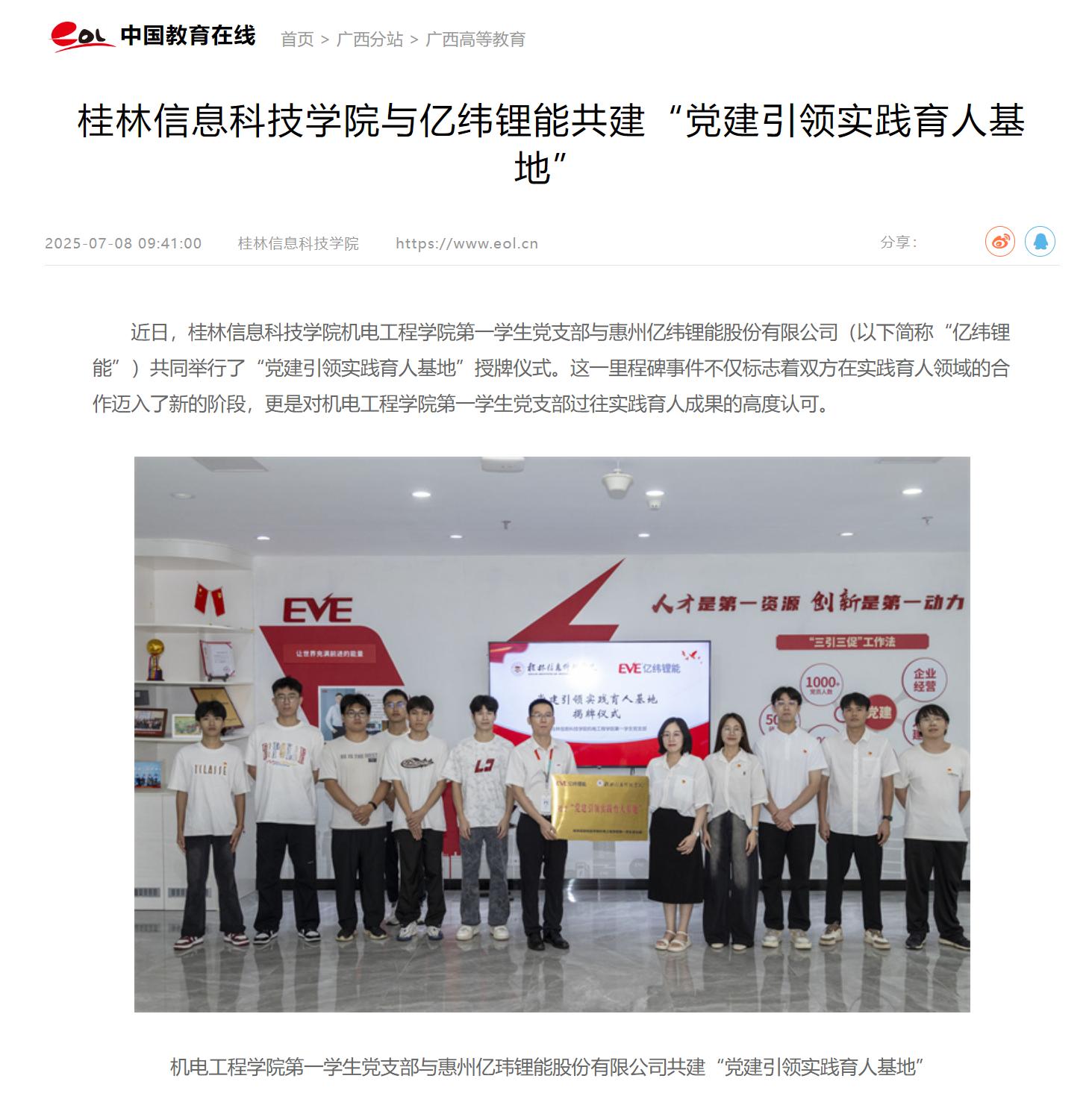 中国教育在线链接:beat365中文官方网站与亿纬锂能共建“党建引领实践育人基地”
