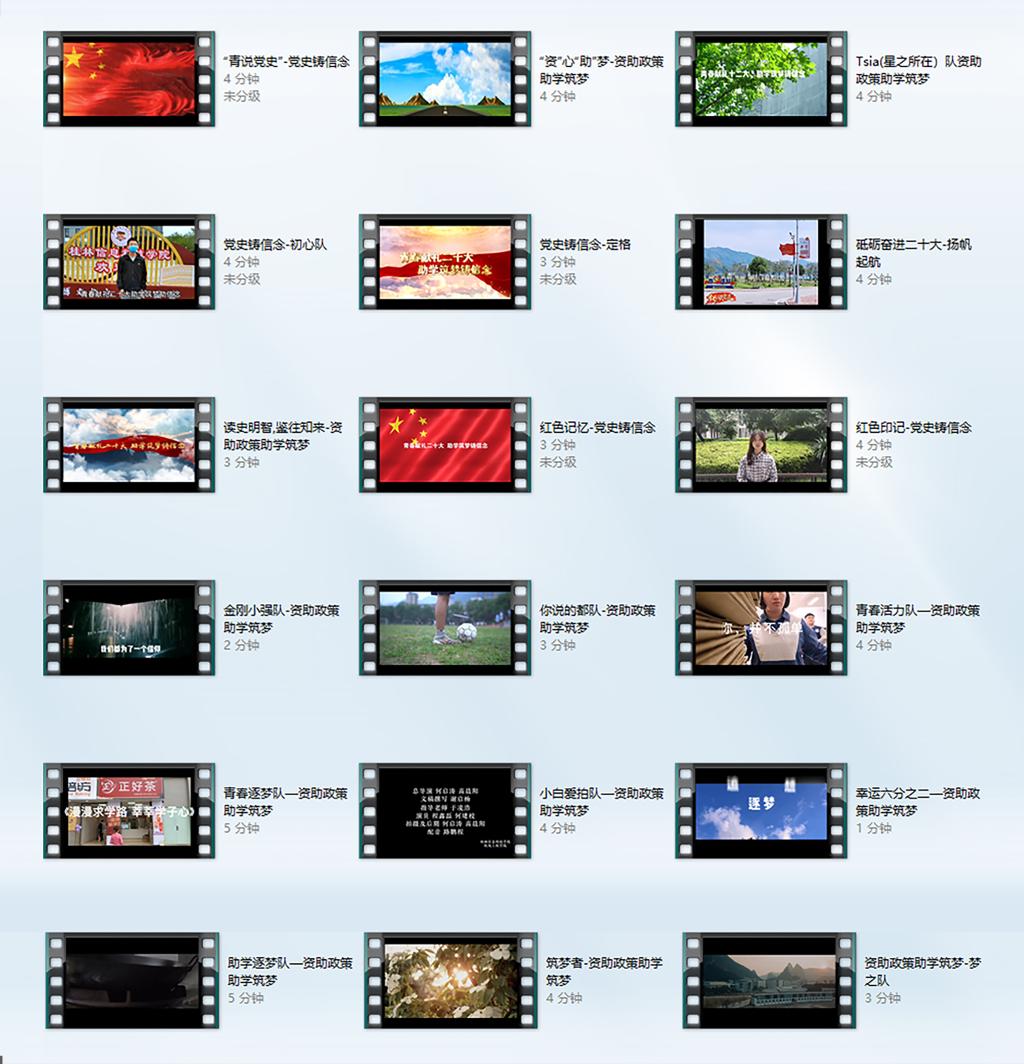 本次资助主题短视频比赛分为“资助政策助学筑梦”、“砥砺奋进二十大”、“党史铸信念”三个拍摄主题。经过同学们的踊跃报名,本次比赛共收到18个团队的短视频作品,视频内容各具特色。经评委评审,最终评选出以下获奖作品: