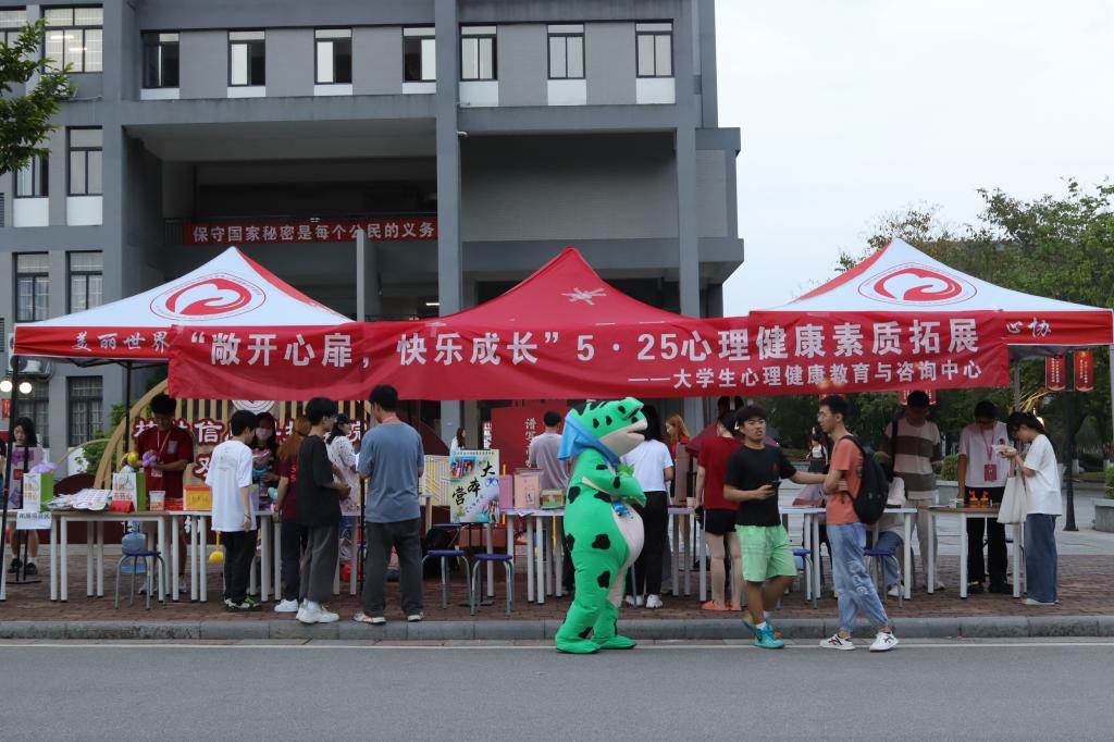 5月25日是全国大学生心理健康日,beat365官网为引导大学生树立团结友爱、互帮互助、携手共进的意识,培育学生自尊自信、理性平和、积极向上的健康心态,5月24日,大学生心理中心带领大学生心理健康志愿者协会于校内第五教学楼空地、第五教学楼旁篮球场及文体中心旁空地开展以“敬开心扉,快乐成长”为主题的5·25心理健康素质拓展活动。活动历时3天,共计参与学生人数1700余人。
