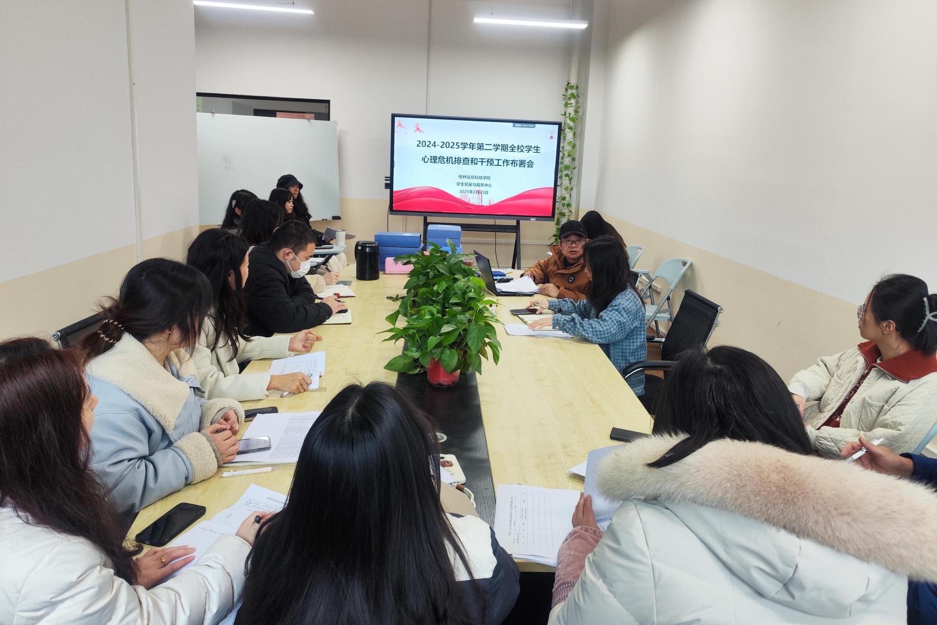 为有效减少或避免因心理危机引发的极端事件,促进学生身心健康、校园和谐稳定,2月25日下午,beat365官网心理中心在F211案例督导室召开了2025年春季学期全校学生心理危机排查和干预工作部署会。学生发展与服务中心相关负责人、心理中心全体教师及各二级学院心理辅导员参加了会议。