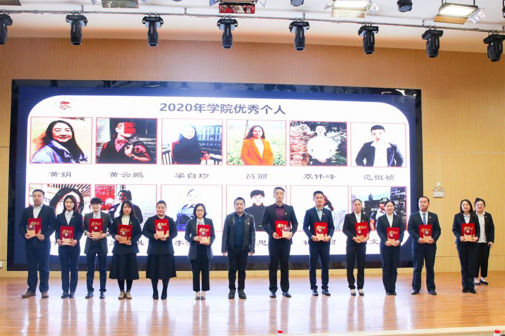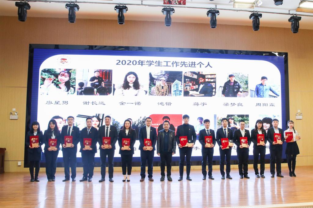 1月18上午,学院在51206报告厅隆重召开2020年度学生工作总结暨表彰大会。院党委书记甘勇、院党委副书记、纪委书记唐步洲、副院长周胜源出席会议,党群事务部、教务科技部、招生就业部、思政部等部门负责人以及学工系统全体人员参加会议,会议由学生工作部部长周璇主持。