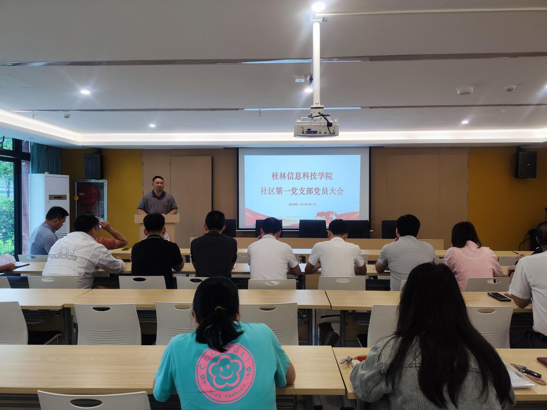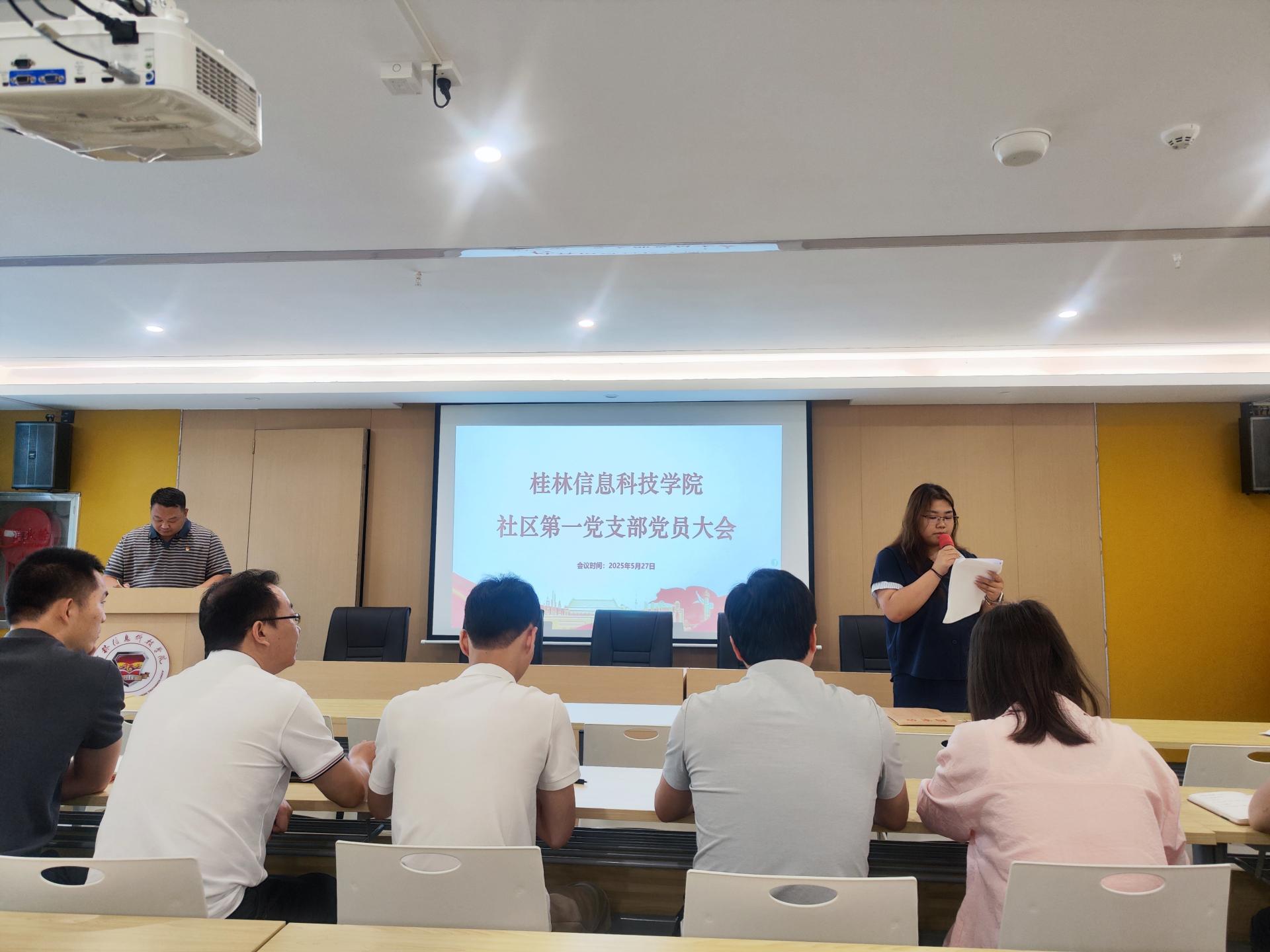 5月27日上午,beat365中文官方网站社区第一党支部在一站式学生服务中心多功能厅召开党员大会,进行首次支部委员选举工作。旨在进一步加强党组织建设,提升党支部的凝聚力和战斗力,充分发挥基层党组织的战斗堡垒作用。本次会议由罗光铭同志主持,社区第一党支部共计26名党员(含预备党员)参加。