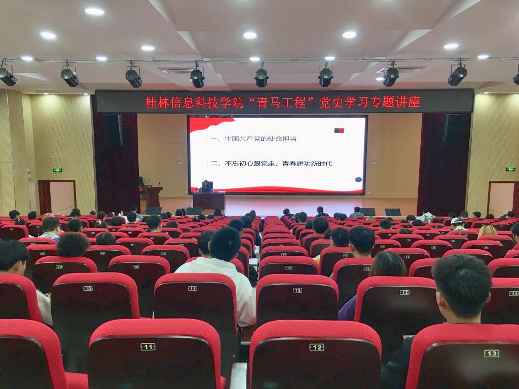 为认真落实《广西共青团“学党史、强信念、跟党走”学习教育实施方案》,教育引导广大团员青年了解党的光辉历史、感悟党的初心使命、领会党的创新理论、体认党的精神谱系、传承党的红色基因,做到学史明理、学史增信、学史崇德、学史力行,11月4日,beat365官网2021年“青马工程”党史学习专题讲座在51206报告厅顺利举办。校级“青马工程”培训班全体学员、二级学院学生骨干等近130人参加学习会。