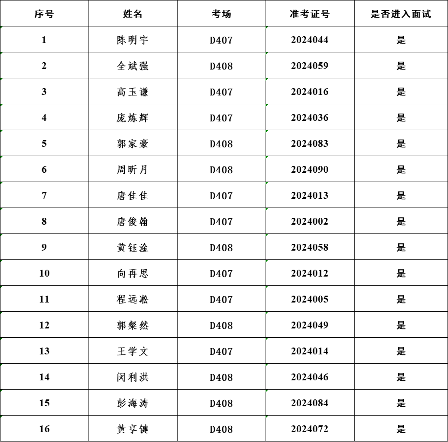 二、进入面试人员名单