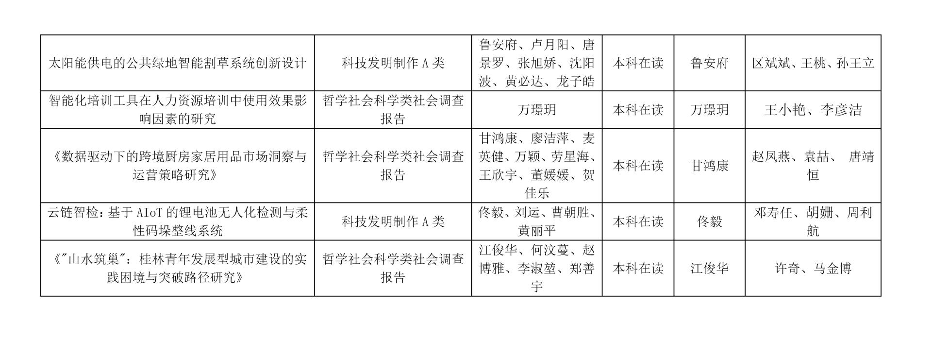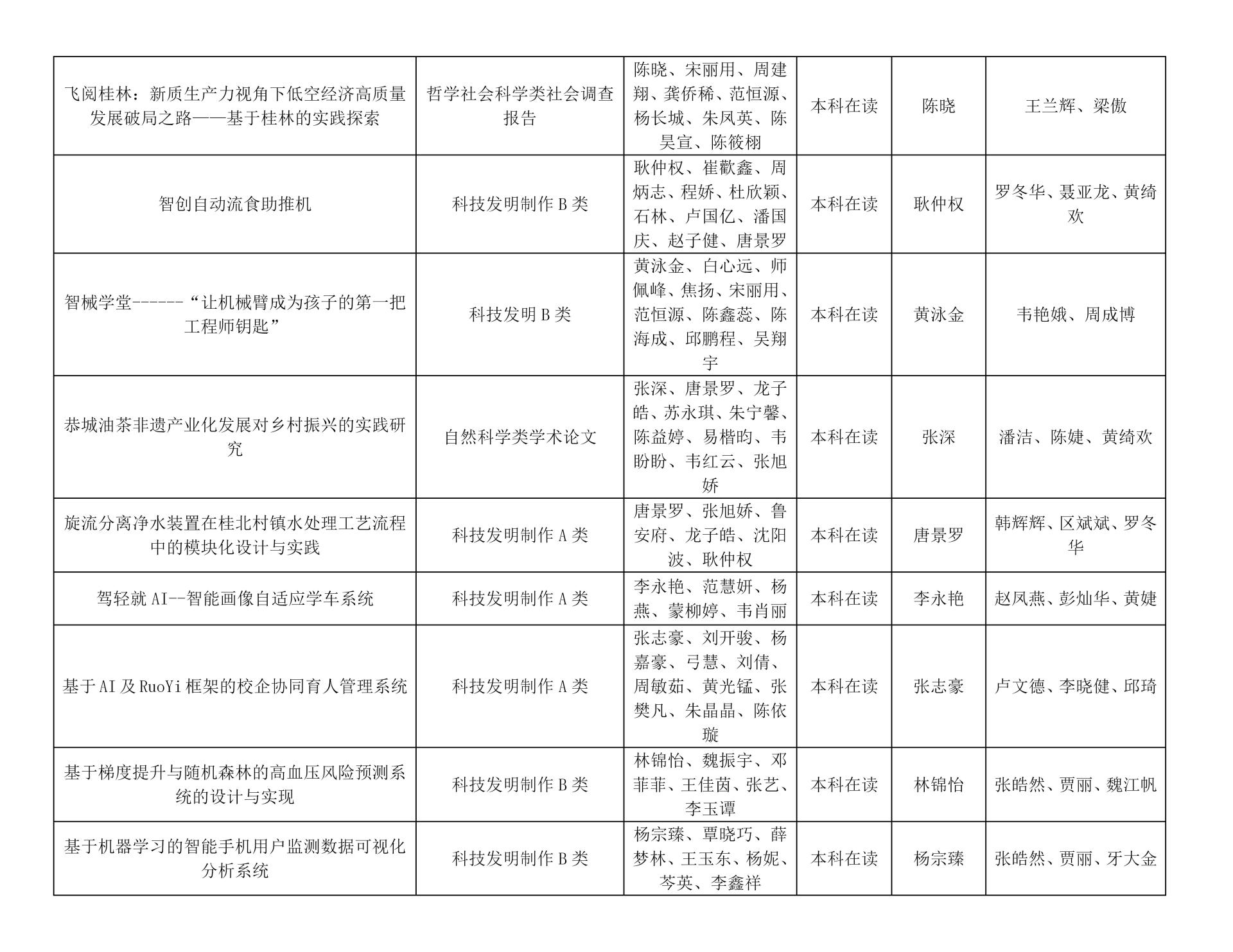 根据关于组织开展第十二届“挑战杯”广西大学生课外学术科技作品竞赛的通知,经学院推优、专家盲审和现场评审答辩,现拟推荐25件作品参加第十二届“挑战杯”广西大学生课外学术科技作品竞赛,现予以公示,公示期为5个工作日(2025年4月21日—4月25日)。