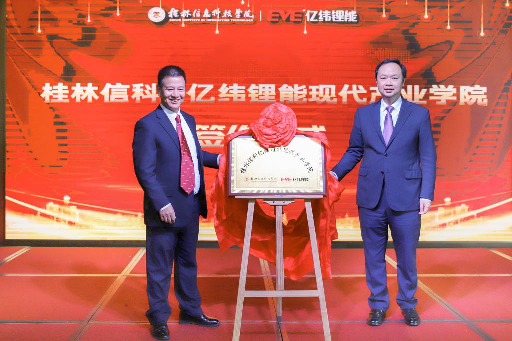 桂林信科亿纬锂能现代产业学院揭牌成立视频链接:https://mp.weixin.qq.com/s/uRyR4CMAqpo4mW2bPLo_zQ12月12日上午,学校和惠州亿纬锂能股份有限公司隆重举行揭牌仪式。学校董事长罗欣,惠州亿纬锂能股份有限公司副总裁黄国民出席活动并为桂林信科亿...