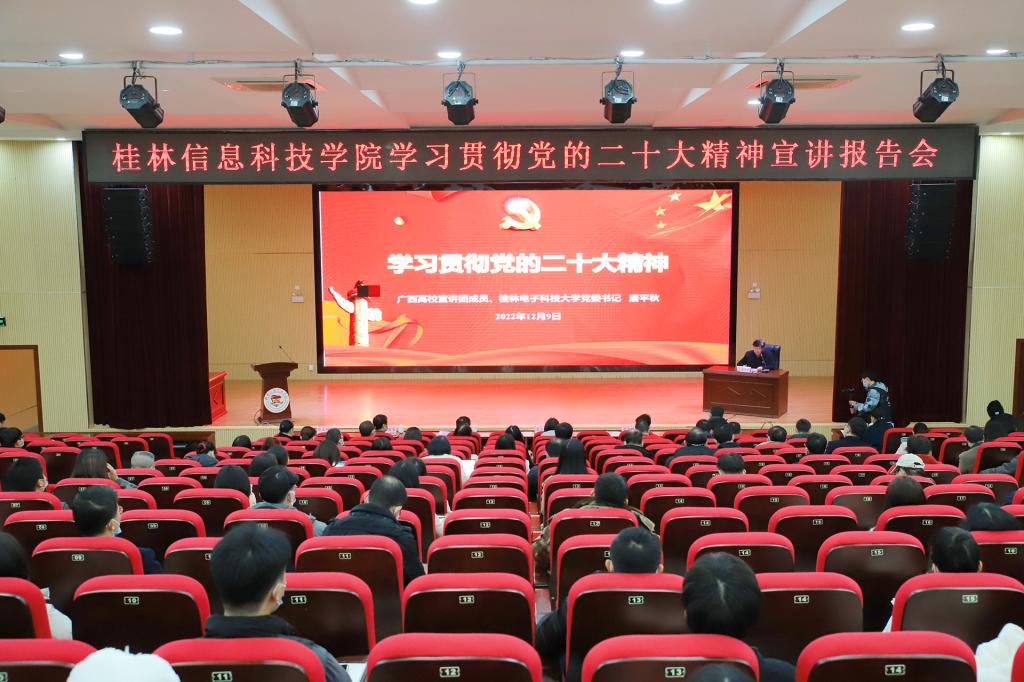 【聚焦二十大】学校举办党的二十大精神广西高校学习宣讲报告会(桂林信...12月9日上午,学校在51206报告厅举办党的二十大精神广西高校学习宣讲报告会(beat365中文官方网站专场)。自治区党委教育工委特聘宣讲专家、广西高校宣讲团成员、桂林电子科技大学党委书记唐平秋作《学习贯彻党的二...
