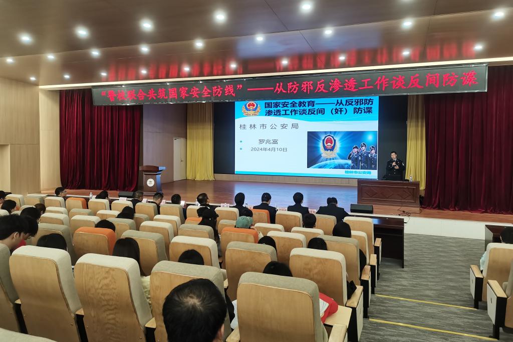 国家安全,人人有责——全民国家安全教育日宣传进校园今年是习近平总书记提出总体国家安全观10周年,2024年4月15日将迎来第九个全民国家安全教育日。为做好学校师生的国家安全宣传教育,4月10日上午,学校联合桂林市公安局国保支队,开展国家安全宣讲进校园活动。桂...