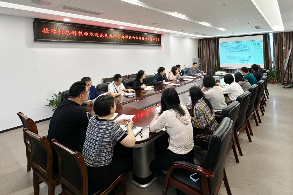 学校召开规范民办高校办学行为专项行动工作布置会5月10日下午,学校在804会议室召开规范民办高校办学行为专项行动工作布置会。学校校长解庆林,副校长李桂华、陈玲萍、刘跃峰,财务总监陈昱州,党委副书记、纪委书记李飞,校长助理韩剑出席会议,各单位负责人参...
