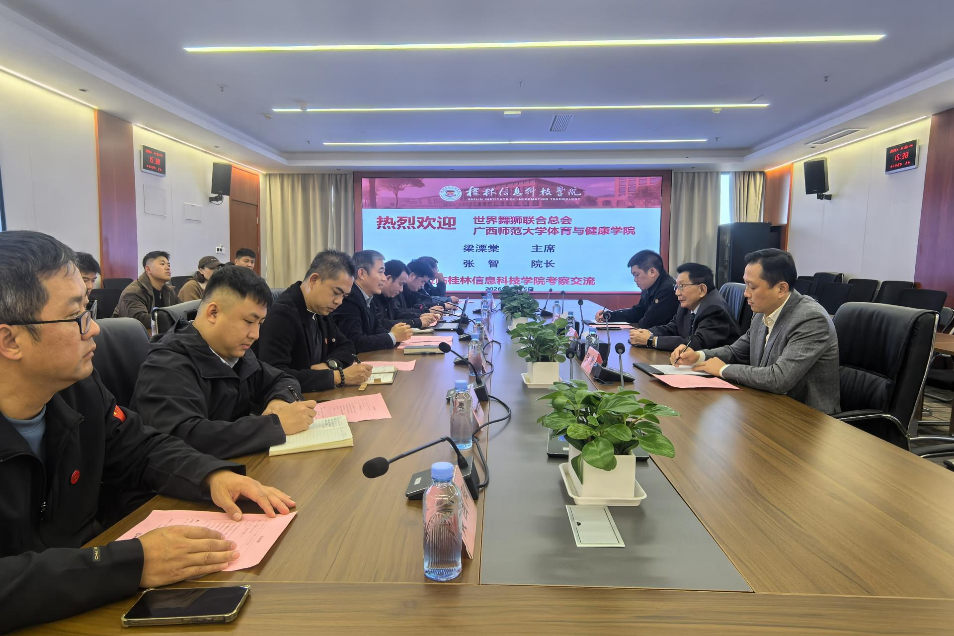 世界舞狮联合总会主席梁溧棠一行来beat365官网考察交流2026年1月15日下午,世界舞狮联合总会主席、马来西亚龙狮运动联合会主席梁溧棠,世界舞狮联合总会副主席、广西师范大学体育与健康学院副院长张智一行来beat365官网考察交流。此次活动旨在深化校会合作,共推龙狮文化传承...