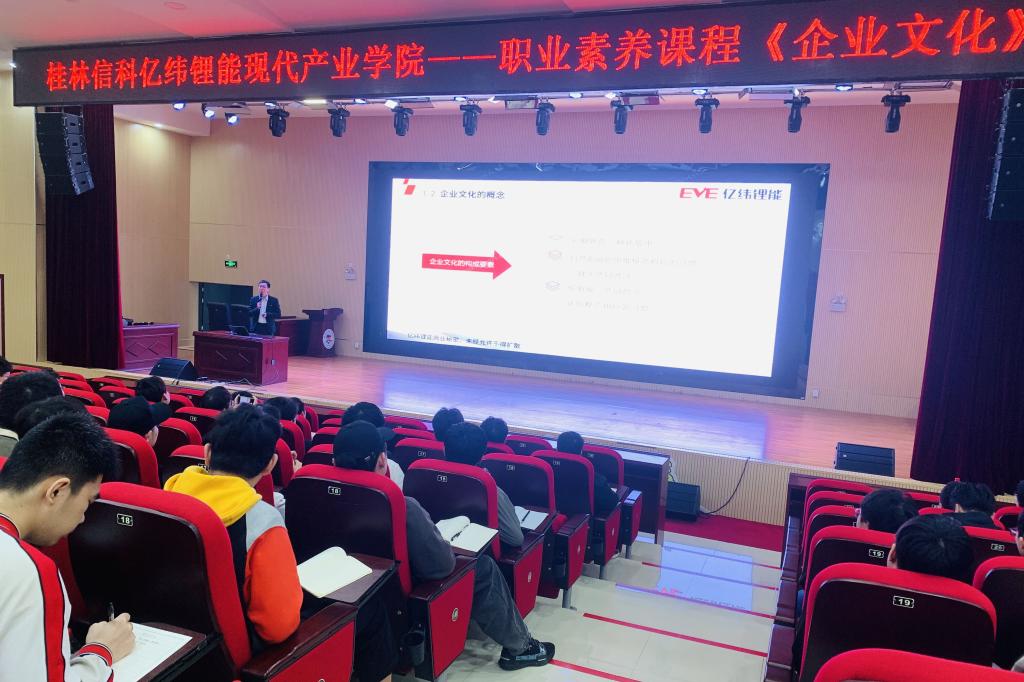 【校企联合培养】桂林信科亿纬锂能现代产业学院开展《企业职业素养》课程为提升现代产业学院学生企业的认知度、深化职场礼仪,4月6日,机电工程学院在51206报告厅开展《企业职业素养》课程。全体现代产业学院学生230余人参加,培训会分别由亿纬锂能高级经理梁东来、研修院老师马婧慧讲...