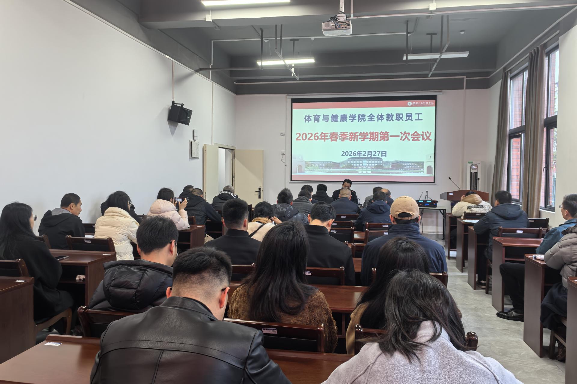 体育与健康学院召开2026年春季新学期第一次工作会议2月27日上午,学院2026年春季新学期第一次工作会议在行健楼108会议室召开。会议全面总结上学期相关工作,统筹部署新学期教学、管理、学生工作等各项任务,为新学期工作开展明确方向、提出要求。会上,院长周勇...