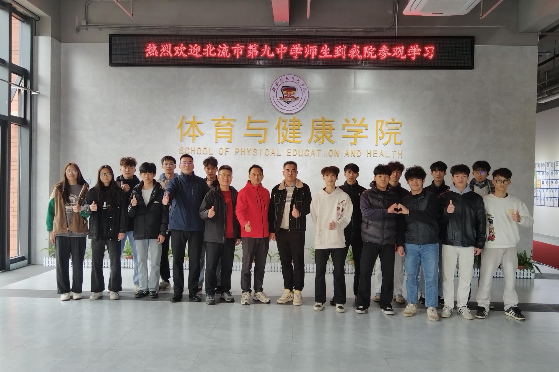 北流市第九中学师生到beat365官网体育与健康学院参观交流为深化大中小学教育衔接,搭建体育素养培育交流平台,帮助中学生近距离感受高校体育专业魅力、明晰体育学习方向,近日,北流市第九中学师生代表一行走进体育与健康学院,开展沉浸式参观交流活动,beat365官网体育与健康...