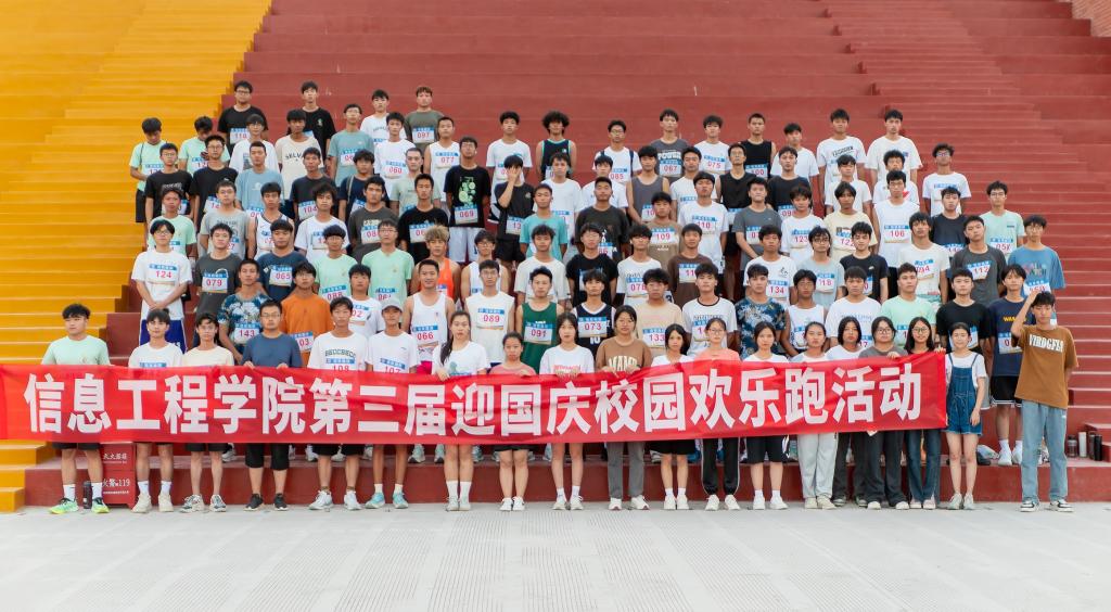 健康运动·快乐生活——信息工程学院举办第三届迎国庆校园欢乐跑活动喜迎国庆,奔跑向未来,9月27日下午,信息工程学院在学校操场举办第三届迎国庆校园欢乐跑活动,师生们以跑步的方式给祖国庆生。本次活动由我院分团委组织策划,全院跑步爱好者参加。活动开始前,学院分团委书记覃...