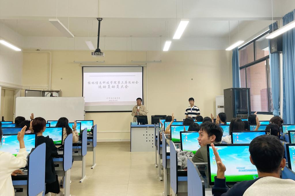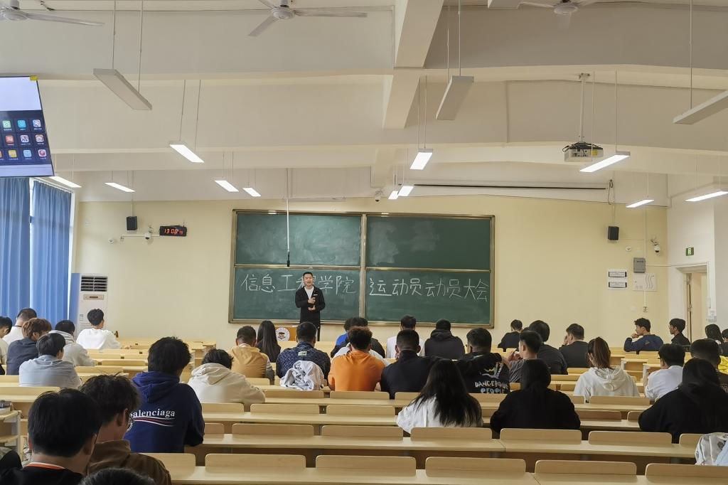 信息工程学院召开运动员动员大会10月11日,信息工程学院召开校运会运动员动员大会,本次会议由我院学工办主任、分团委书记覃伟峰老师主持,学院全体运动员参加了本次会议。覃伟峰老师在会上表示,学院对即将到来的校运会充满了期待,希望全体...