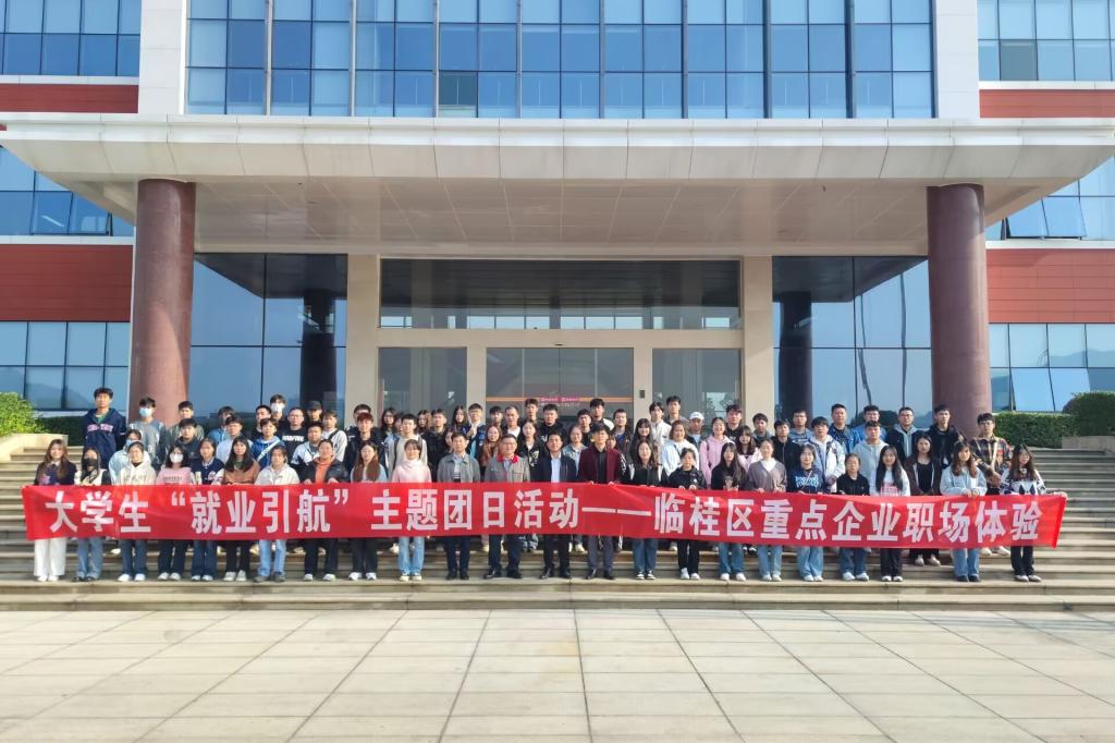【团团微就业】学校开展2023年度“就业引航”大学生职场体验主题团日活...为进一步落实“共青团促就业行动”,进一步宣传桂林市临桂区优质企业,贯彻落实毕业生“留桂就业计划”,支持和帮助同学们迈好走向社会的第一步。11月27日,学校组织近百名大三、大四的毕业生和准毕业生们赴桂林...