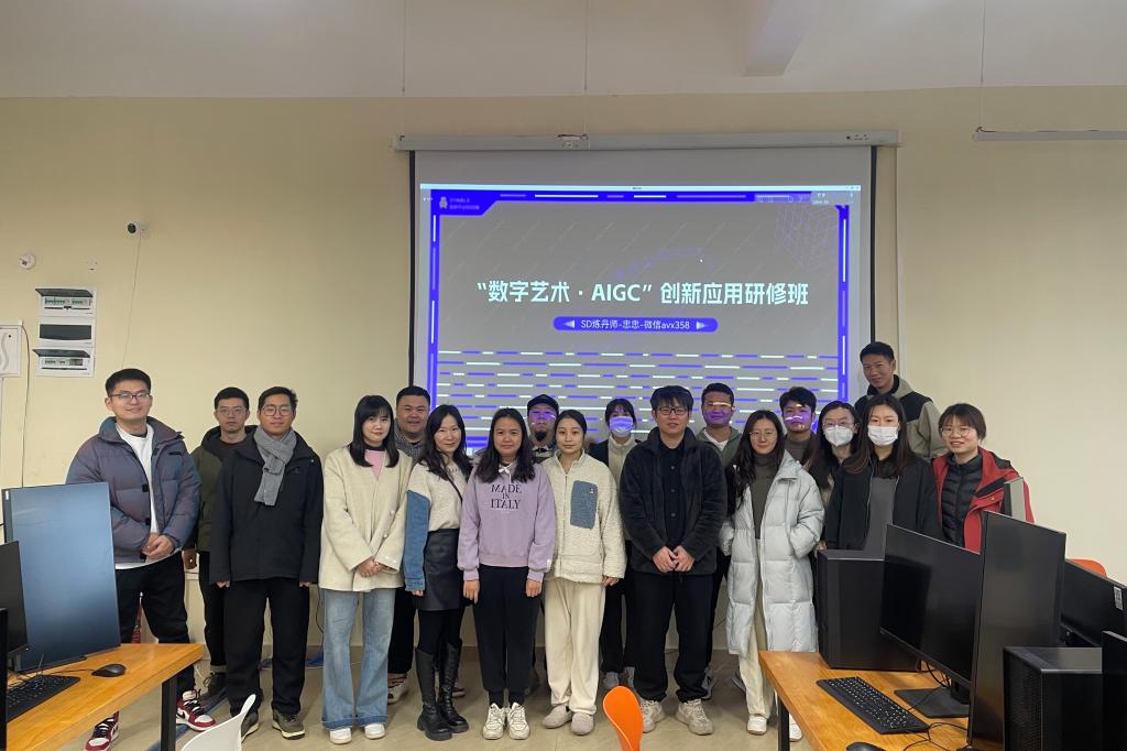 创意设计学院组织开展“数字艺术·AIGC”创新应用研修2023年,生成式人工智能(Artificial Intelligence Generated Content,简称“AIGC”)的浪潮涌向各个领域,尤其是艺术与设计领域。为增强教师数字化教学技能,提升教师AI设计能力,我院1月15日至1月19日在E117组织开...