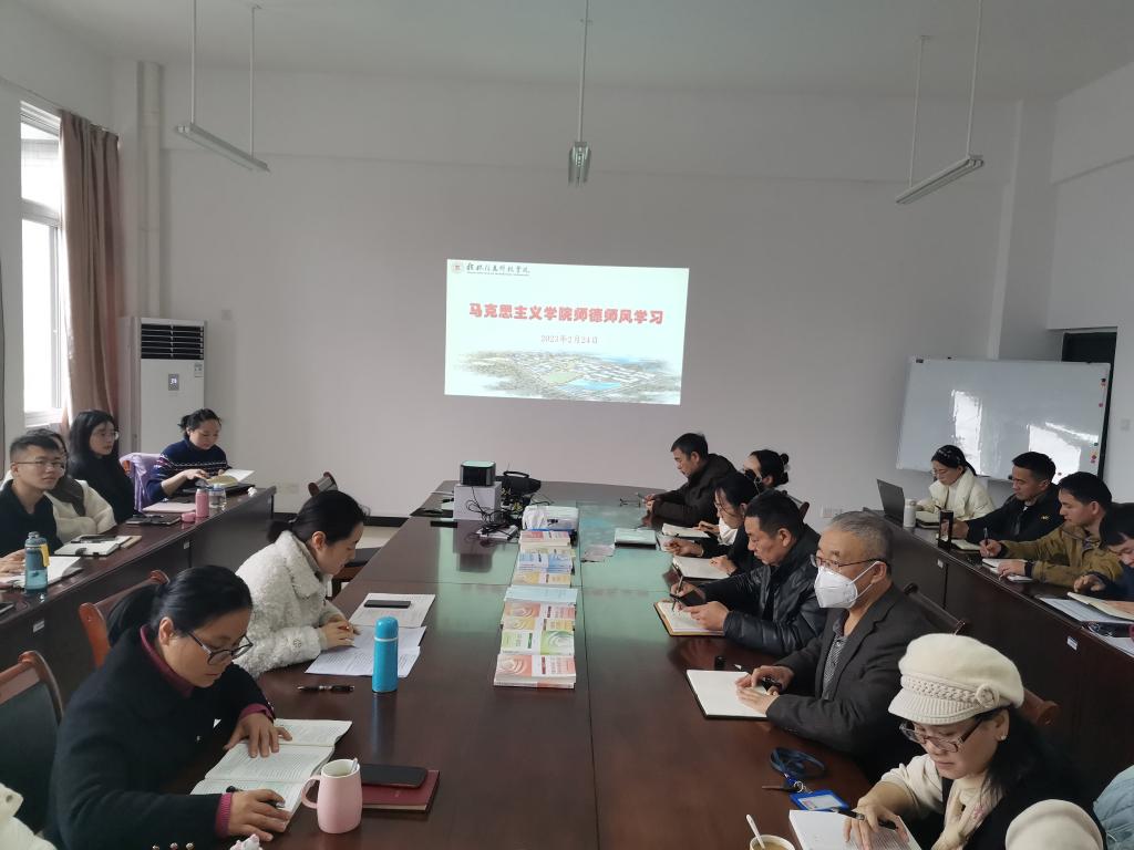马克思主义学院组织师德师风专题学习为了进一步加强师德师风建设,不断提高教师的职业道德素养,2月24日下午,马克思主义学院组织师德师风专题学习,会议由李琳玲副院长主持,全体教师参加。会上,学院党支部副书记王硕老师领学了《桂林电子科技大学...