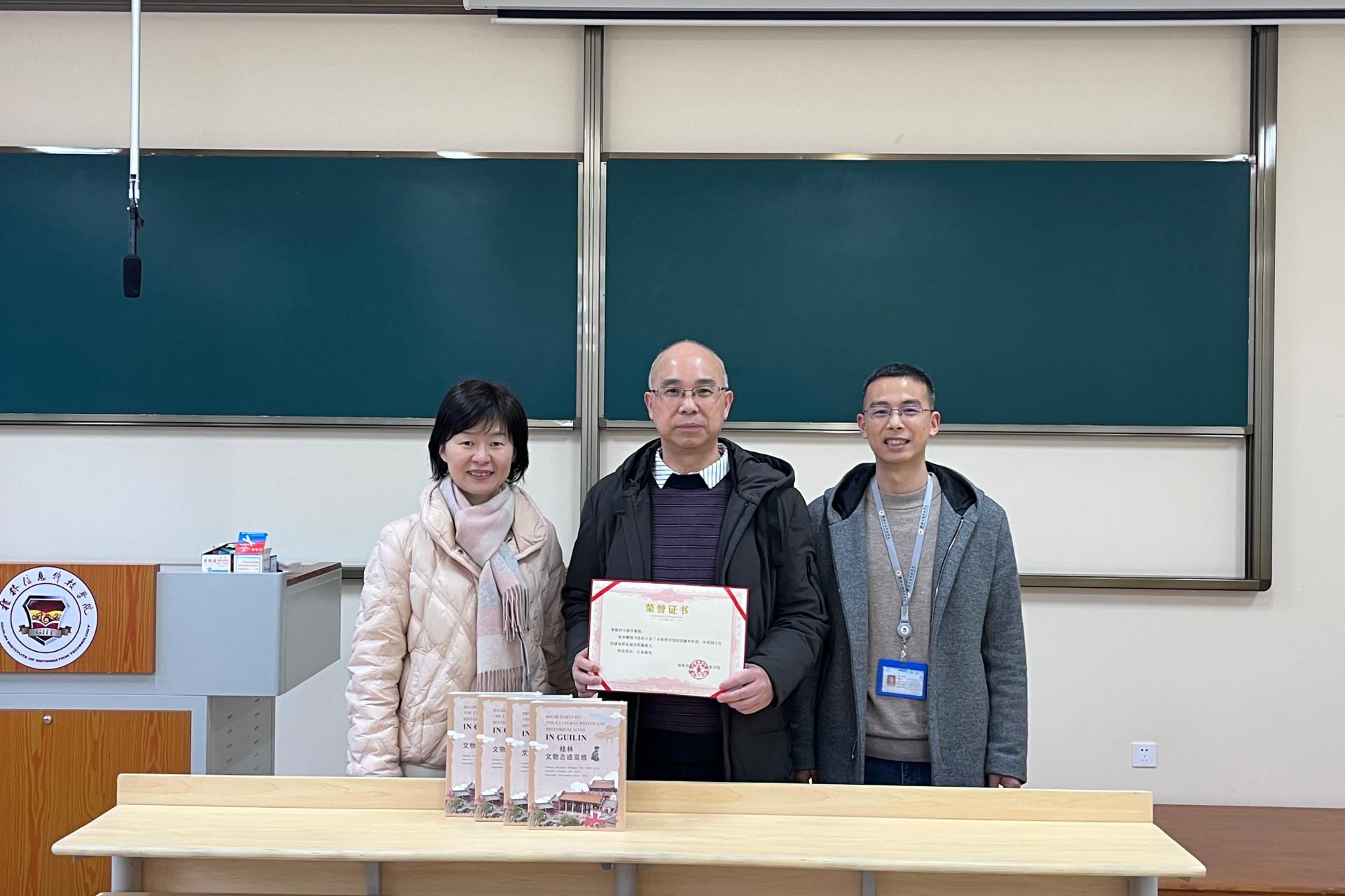 外贸与外语学院韦储学教授为图书馆捐赠图书3月5日上午,外贸与外语学院韦储学教授在D411室为学校图书馆捐赠图书一批。图书馆馆长申琍参加受赠仪式,对韦教授关心支持图书馆工作和文化事业发展的爱心义举表示衷心的感谢,并向韦教授颁发了捐赠证书。韦储学...