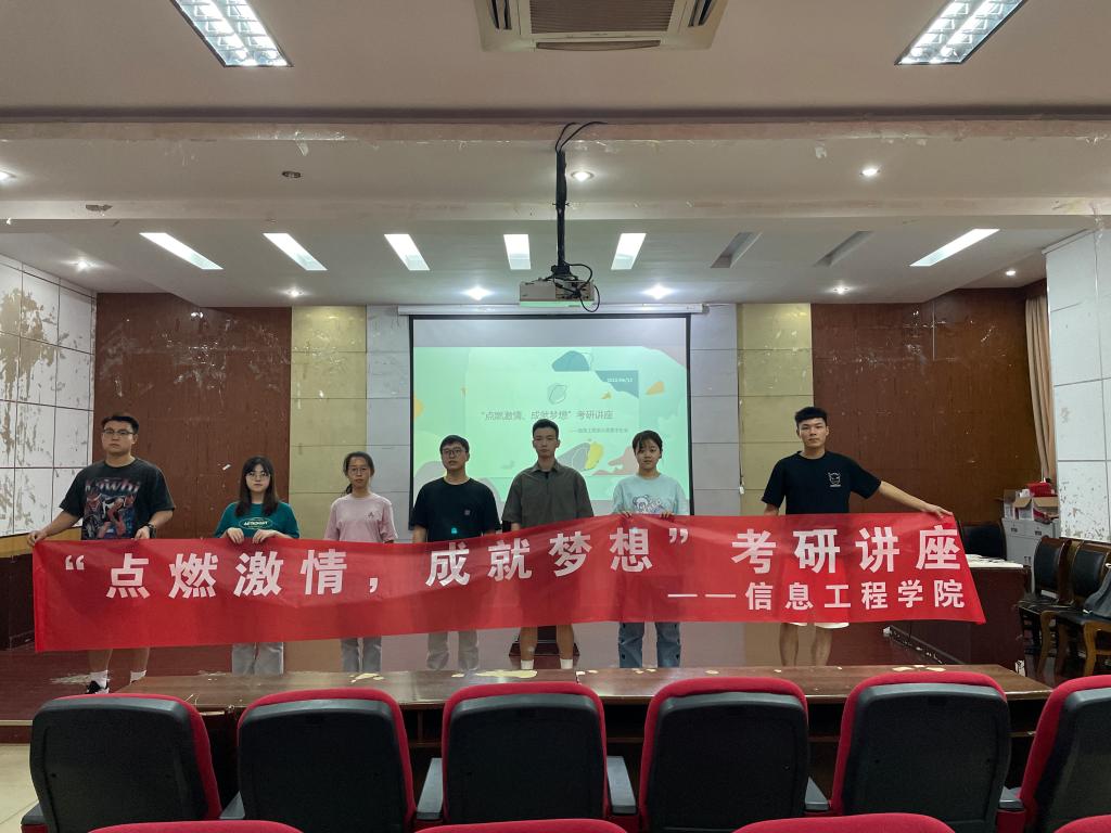 近日,信息工程学院于21201报告厅举办“点燃激情,成就梦想”主题考研讲座。18级考研成功学生潘奕伟、曹楠、谢飞鸿到场向低年级有志愿考研的同学分享考研经历和经验。