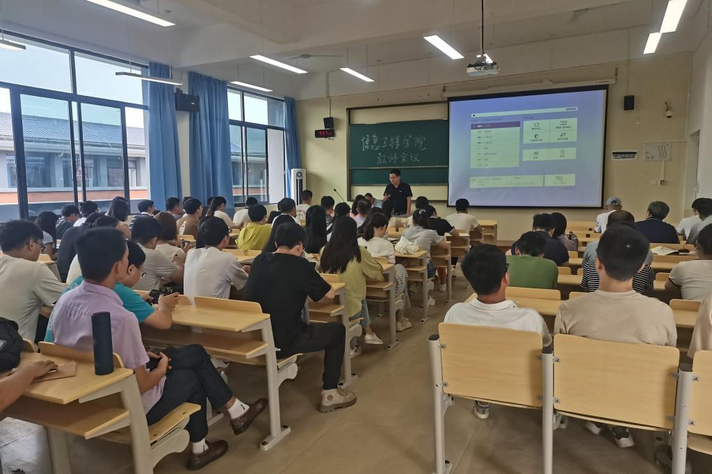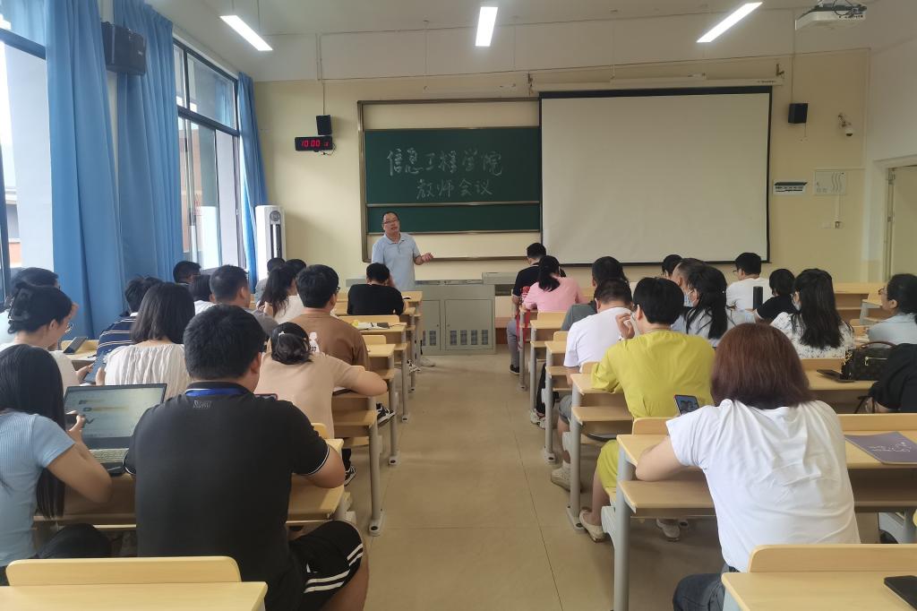 8月26日,信息工程学院召开2023-2024学年秋季学期工作部署会。学院院长黄建灯主持会议并安排部署新学期重点工作,学院党委书记、副院长郭健及副院长莫永华出席并针对学院学生工作、党建工作及教学工作进行总结部署,我院全体教职工参会。