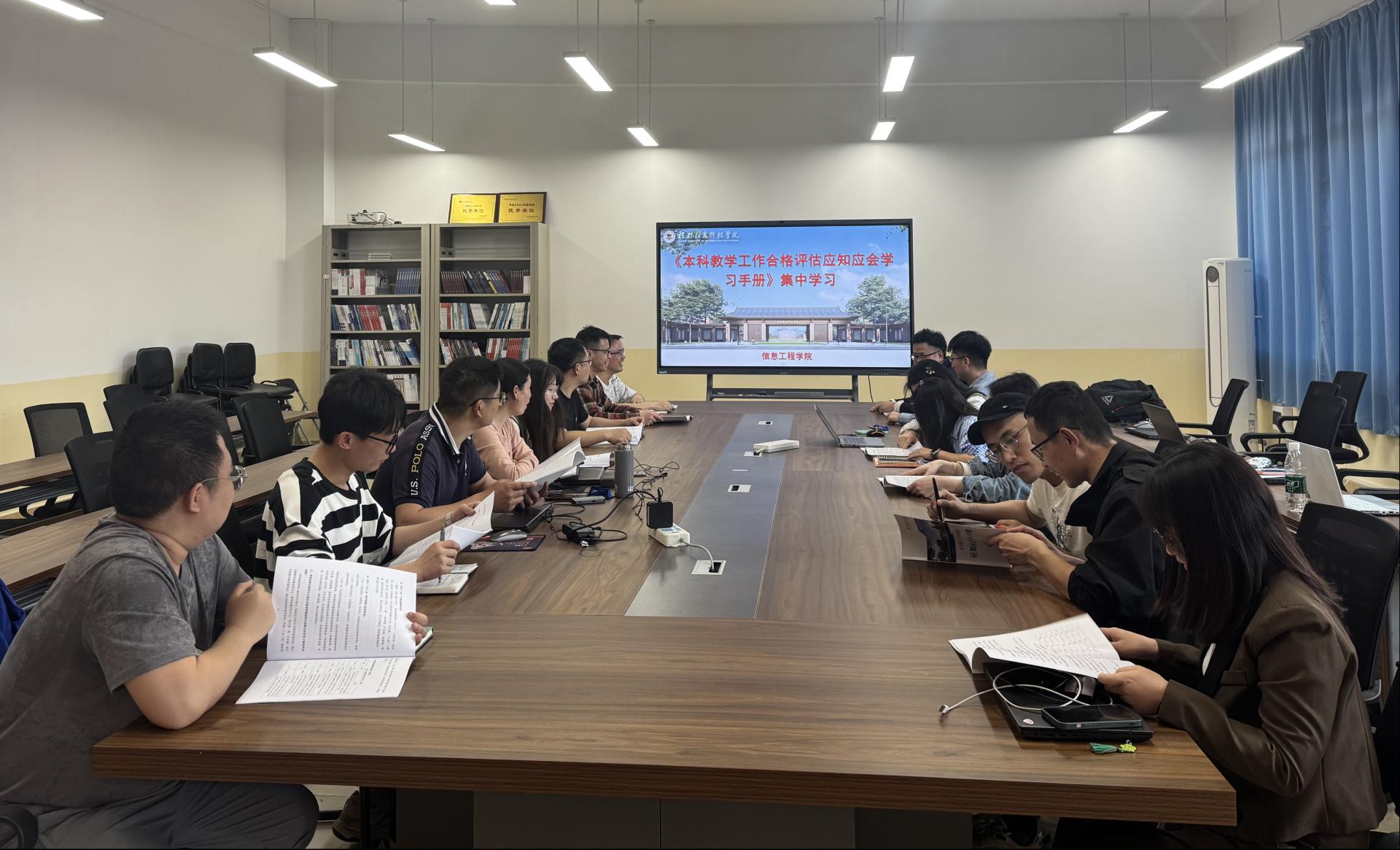 为进一步深化教师对本科教学工作合格评估的理解,3月27日,信息工程学院通信工程教研室组织全体教师开展《本科教学工作合格评估应知应会学习手册》的学习。本次学习会由教研室主任黄鹏老师主持,全体教研室专任教师人员参加。