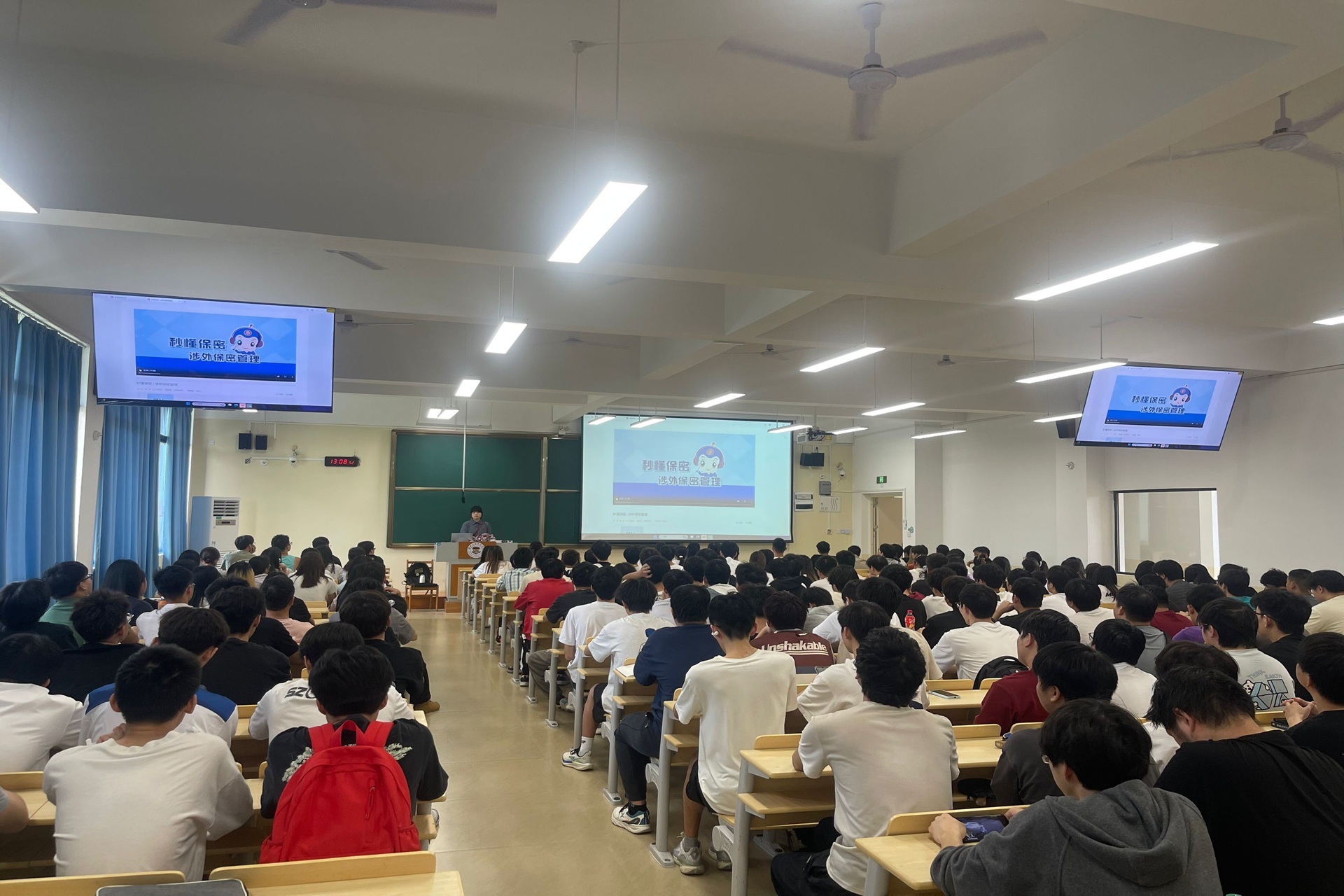大点名活动中,辅导员们以简洁有力的语言,点明信息时代背景下保密工作的紧迫性与重要性。结合信息工程专业特性,从网络安全漏洞、数据跨境传输等方面,为学生揭示可能存在的泄密隐患,让学生直观认识到看似平常的操作背后,或许隐藏着危害国家安全的风险。主题班会则是教育活动的“深度课堂”。辅导员们带领学生逐章解读《中华人民共和国保守国家秘密法》,结合近年来国内外因信息泄露引发的重大安全事件,通过对案例的深入剖析,让学生们清楚认识到保密纪律不仅是规范要求,更是国家安全的坚固盾牌。