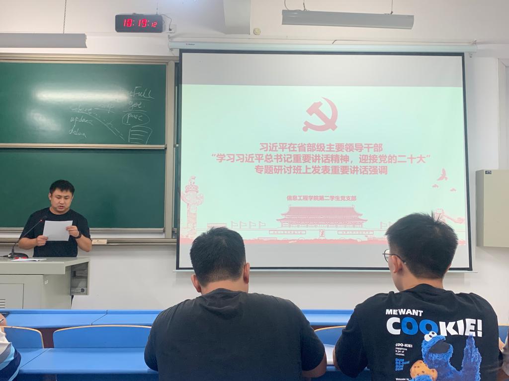 9月26日至29日,信息工程学院第一、第二、第三学生党支部分别开展理论学习,深入学习贯彻习近平总书记在中央民族工作会议上的重要讲话精神、《习近平谈治国理政》第四卷、习近平总书记在省部级主要领导干部“学习习近平总书记重要讲话精神,迎接党的二十大”专题研讨班上发表重要讲话强调等内容,本次会议由我院各支部书记主持开展。
