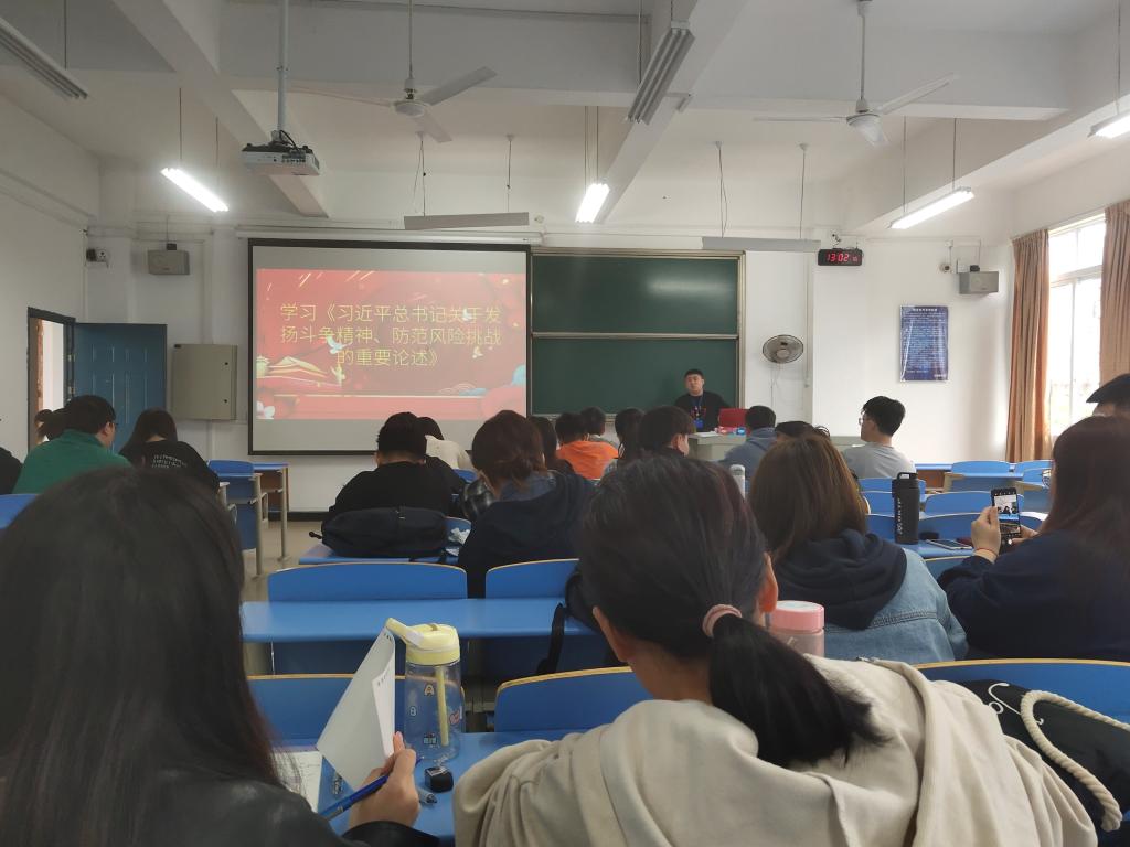 为培养青年学生树立忧患意识,4月23日,信息工程系于31102召开会议,深入学习领会习近平总书记关于发扬斗争精神,防范风险挑战的重要论述。本次会议由信息工程系谢长远老师主持,信息工程系第一、第二、第三党支部全体学生参加。