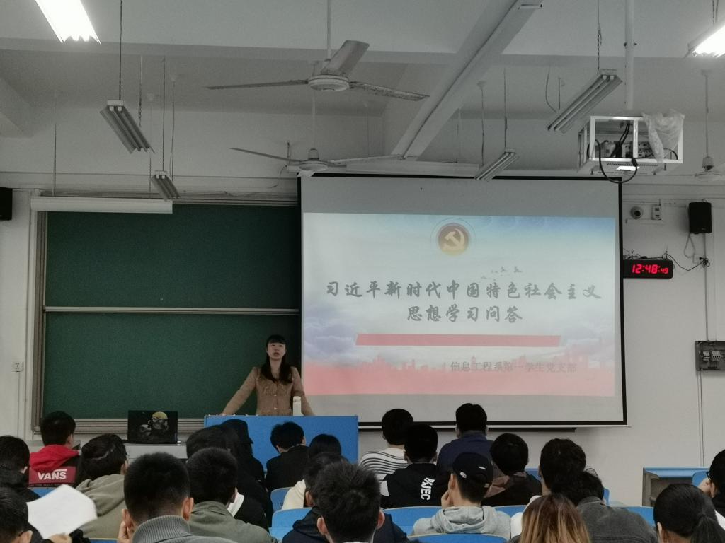 为深化学生对习近平新时代中国特色社会主义思想的理论理解,4月18日,信息工程系于31102组织学习《习近平新时代中国特色社会主义思想学习问答》。本次会议由信息工程系第一学生党支部书记廖星男主持,信息工程系第一、第二、第三党支部全体同志参加。