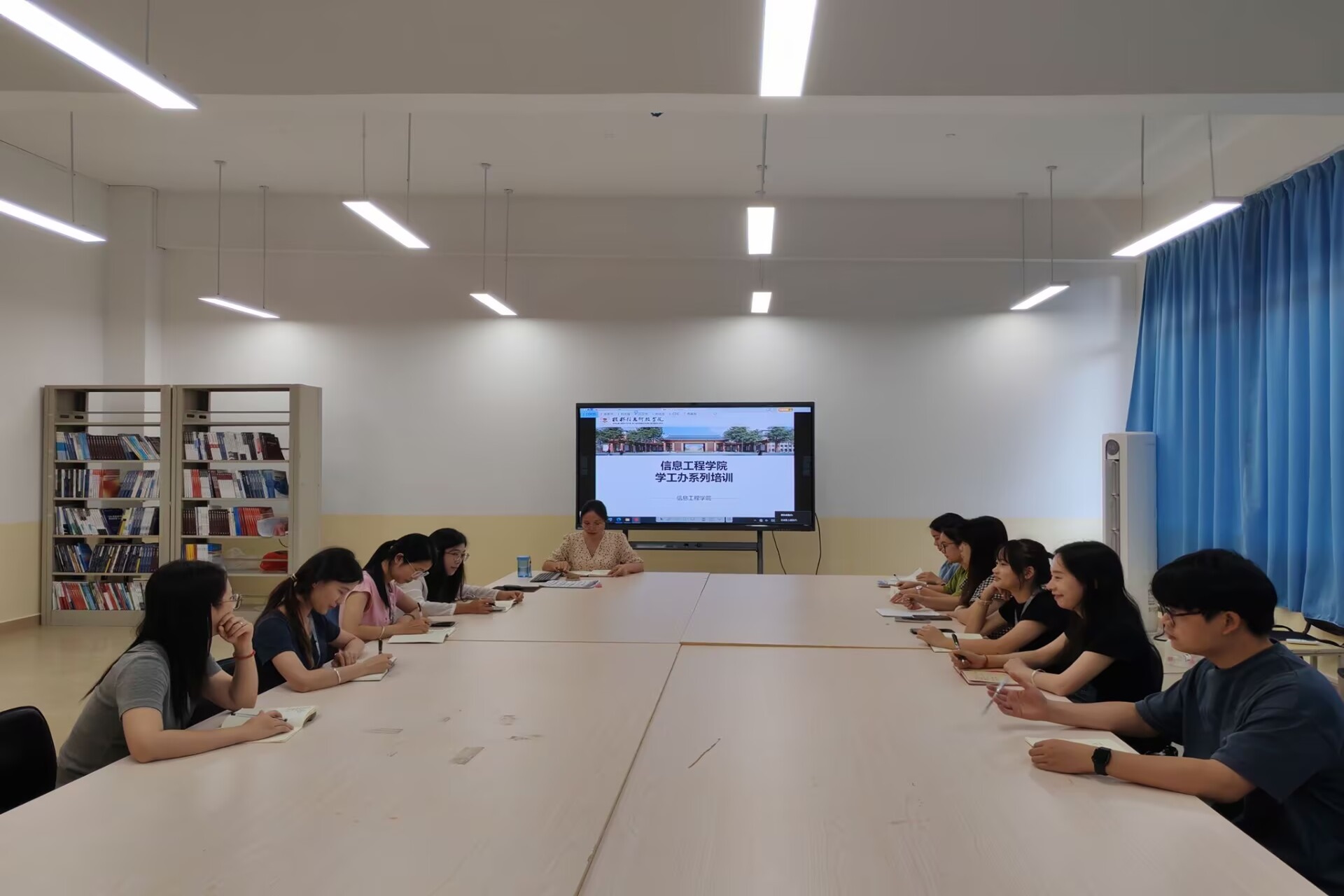 为提升新入职辅导员的党务工作能力,强化思想政治教育,11月6日,信息工程学院“繁星”计划第三期即“党务知识”培训会在B512-1顺利召开。此次培训会由吕丽老师主持,学院全体新入职辅导员参加。