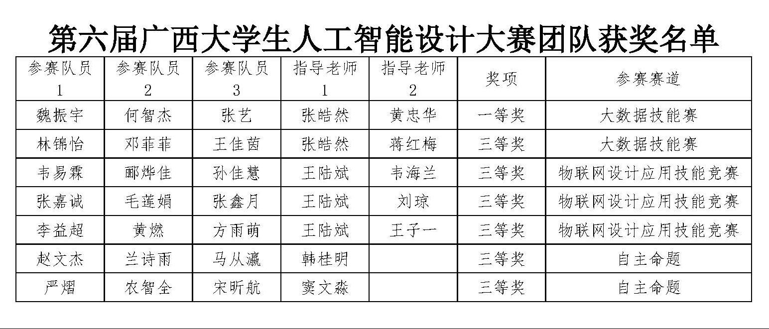 (第六届广西大学生人工智能设计大赛团队获奖名单)