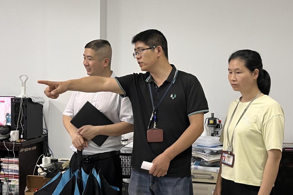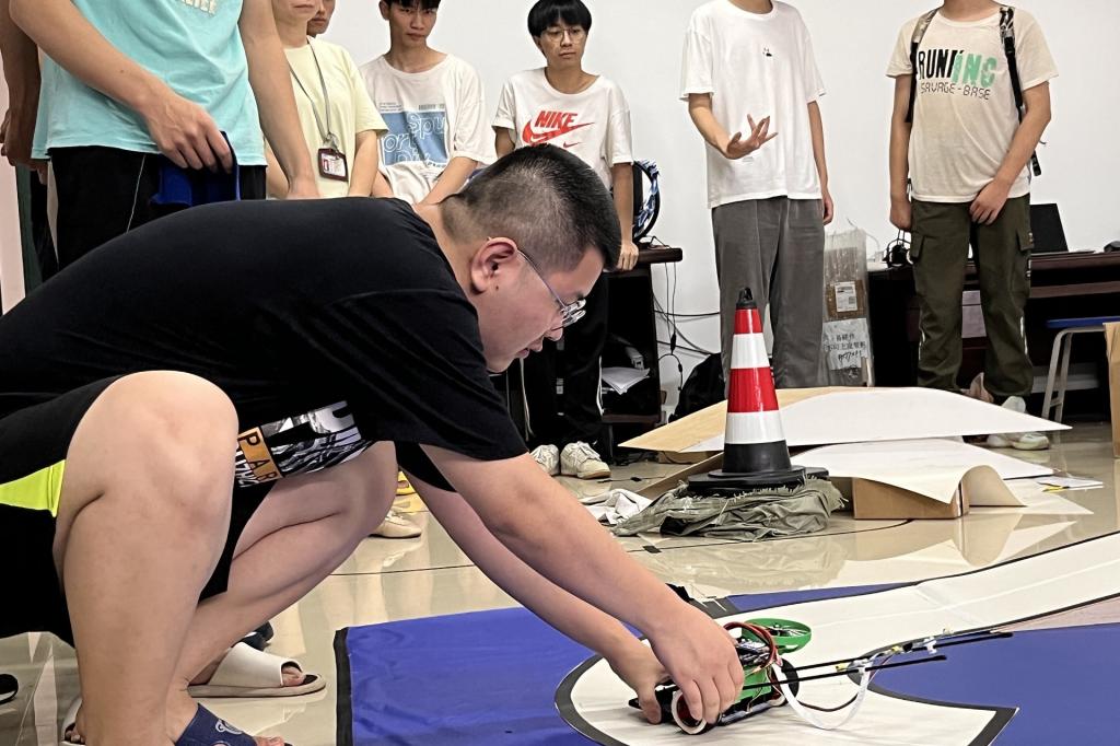 参赛选手提前到场进行相关的调试工作。他们斗志昂扬,自信满满,在竞赛中发挥出最好的实力。随后,评委老师对参赛的五个小组分别进行验收与评判,并向各组参赛选手指出作品的不足之处和提出建议。