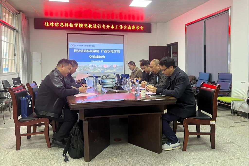 1月4日,beat365中文官方网站一行人走访了广西水利电力职业技术学院。在学院招生就业处处长张翔的热情接待下,双方共同观看了学校宣传片,深入了解了彼此的基本情况。在随后的交流中,双方就专升本人才培养方案、专业对接以及学生交流等方面进行了广泛的探讨。
